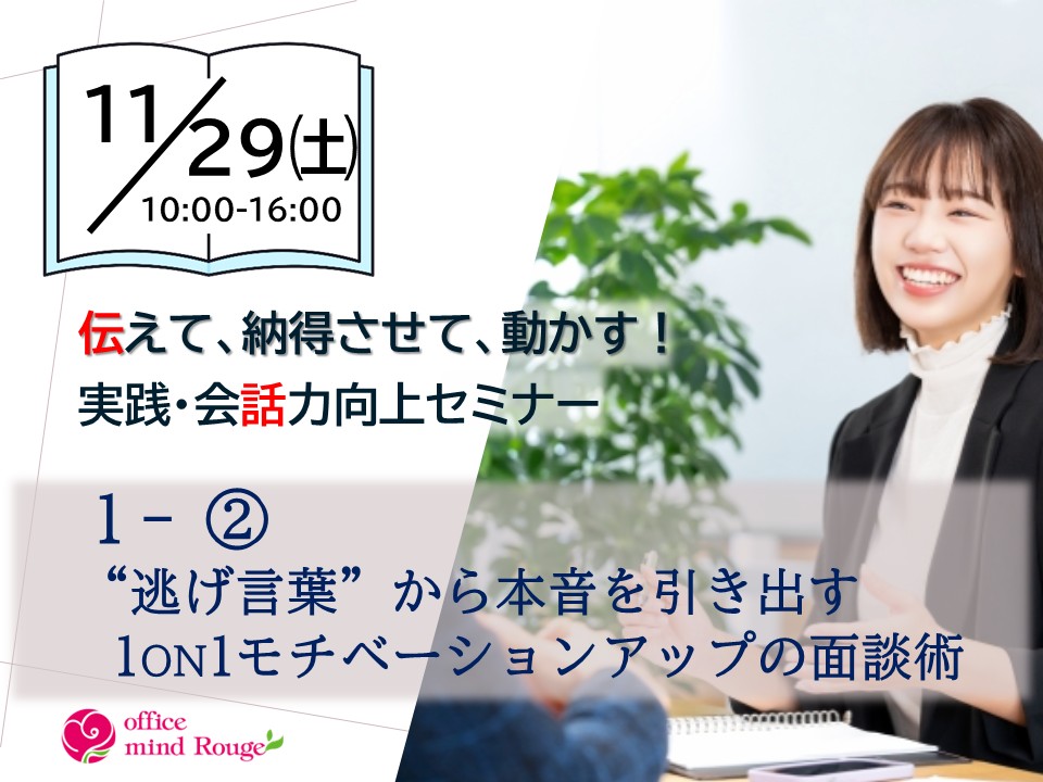 内容:会話の構造化/効果的な褒め方・叱り方/納得を生む伝え方/ロールプレイ