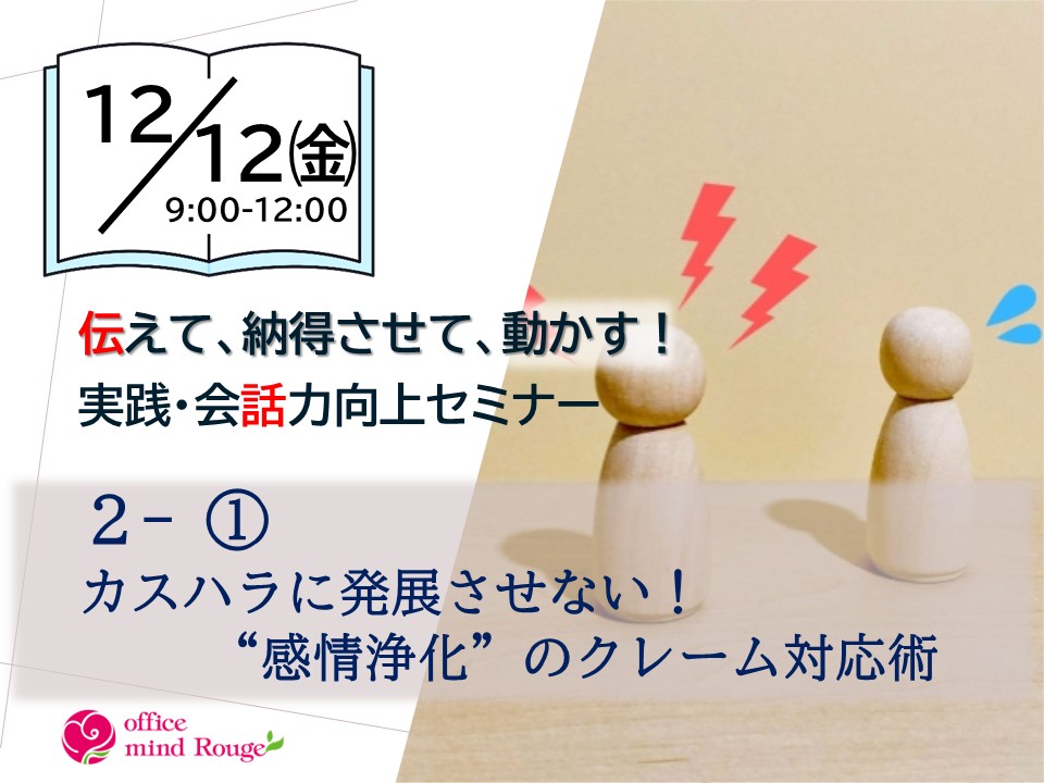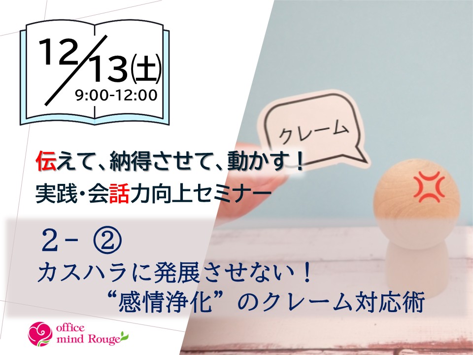 内容:感情浄化/組織の表明/巻き込まれない対応術/ロールプレイ