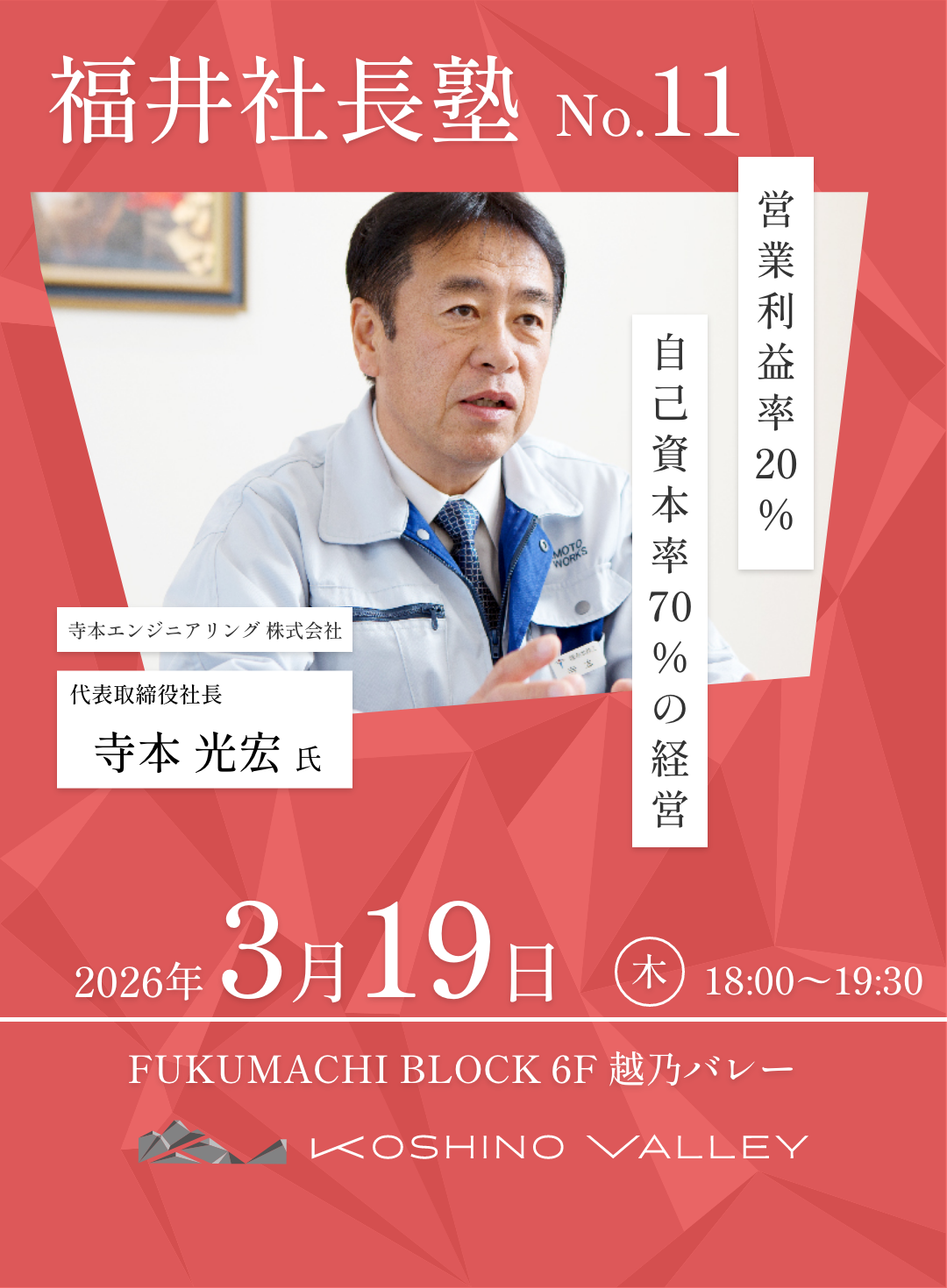 📣 第11回「福井社長塾」— 営業利益率20% 自己資本率70%の経営